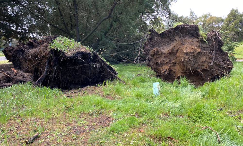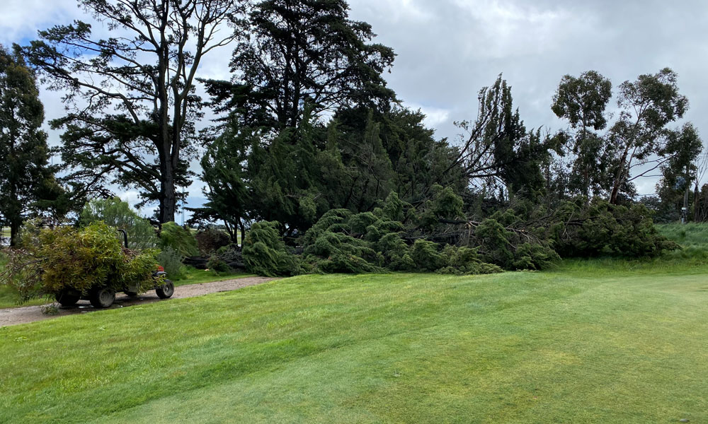The course was also hit with damage mainly to trees, there was a lot of broken branches, but we lost several well-established trees throughout the course. The photos attached is of 2 very large pine trees situated at the back of the 12th green.