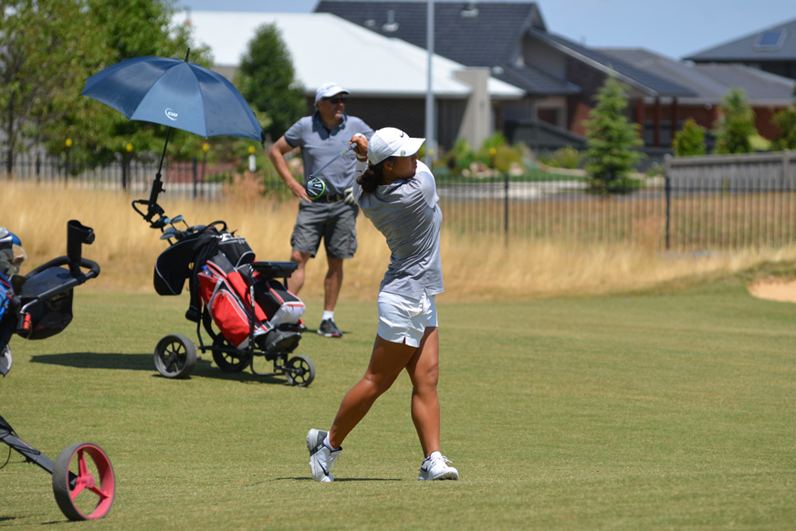 Many spectators came out to watch the event, Ballarat Golf Club Coaching professional Ange Tatt had a great support crew follow her all day in the heat.