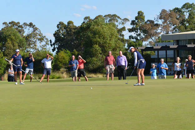 Lorie Kane and Stacey Peters - former Vic Open Winner and local to Cressy – both addressed the crowd and the large audience then watched a nearest the pin shoot out with a player from each country in attendance competing for a $500 prize.