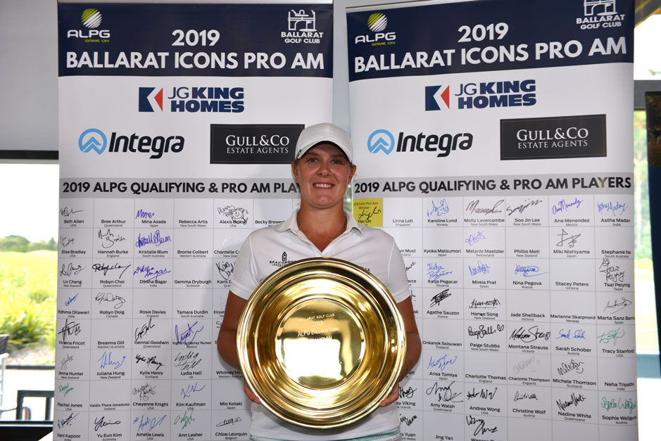 Marianne Skarpnord fired a superb 4-under par 68 in today 's final round of the Ballarat Icons ALPG Pro-am at Ballarat Golf club, to finish at 7-under par and secure a 1-shot victory over American Kim Kaufman and New South Welshwoman Celina Yuan.