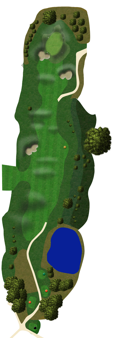 A large bunker on the RHS, positioned some 25 metres short of the green, gives a false sense of distance, and a deep greenside bunker on LHS protects the elevated green. Second shots that finish short will find a swale left and short of the greenside bunker. A variety of pin positions are available, with the more difficult on the LHS of the green behind the bunker. The more conservative play would be to aim for the centre of the green, to get off to a good start to the round.