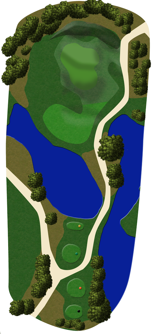 A 164 metre par 3 (151 from the Middle tee and 127 from the Forward tee) has an intimidating water carry (50 - 60 metres from the forward tee). A large “bail out” apron exists on the RHS of the green. The tee shot will be played into the wintery SSW wind, causing many players to come up short.