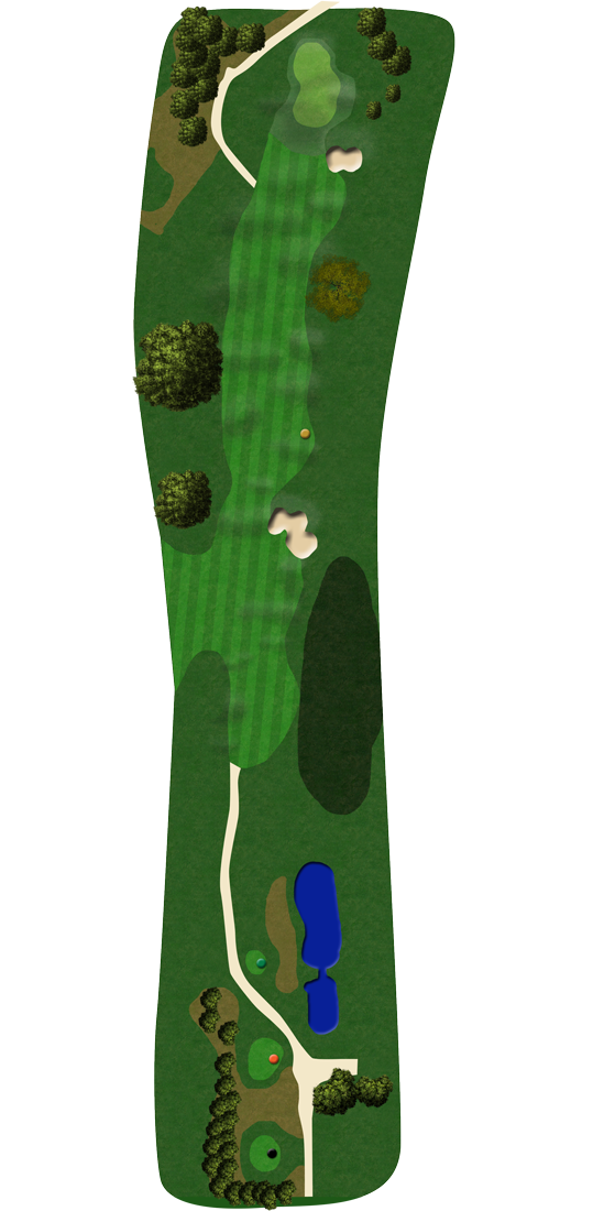 Another fairway bunker short of the green on the right side will trap the short fading second shot. There is a ridge running from the bunker to the green, which has no greenside bunkers but is long and narrow and is surrounded by mounds on the left and large swale at back. This will place a premium on club selection. A really tough hole.