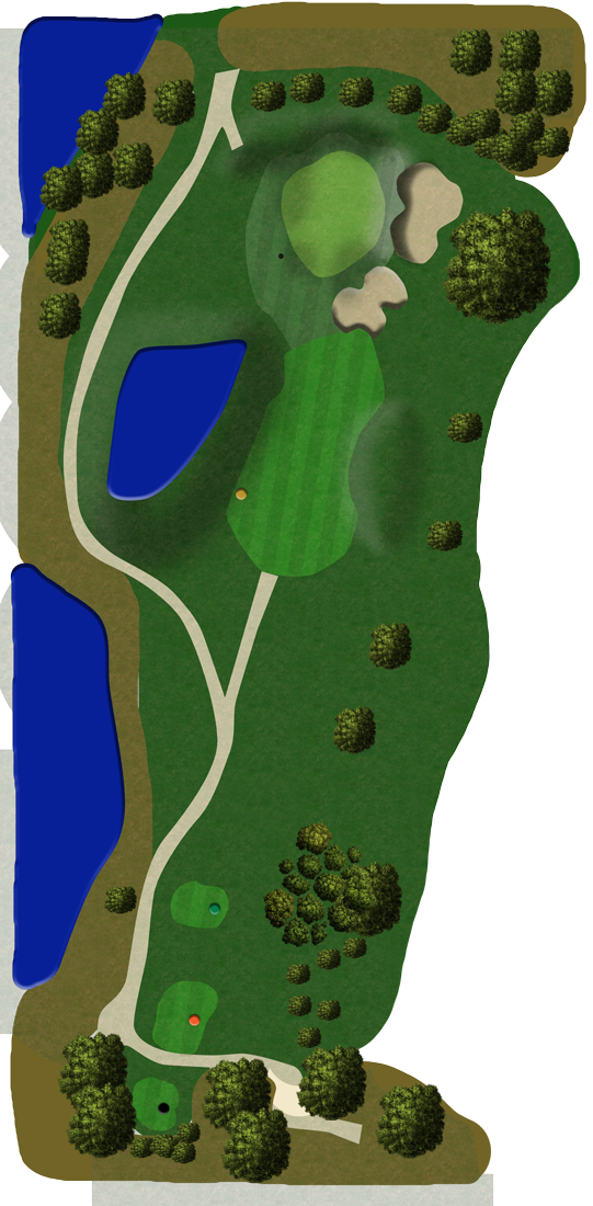 The large elevated green (approximately 2.5 metres above the tee) slopes right to left, making putting challenging. The green is protected on the right by two deep bunkers, with mounding and a hollow on the left. It is essential that players select the right club, so that they will finish flag high. This is a difficult hole, par is a good score and a hole that the course will be remembered for.
