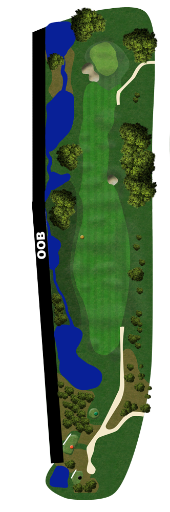 This “straight away” 382 metre par 4 (353 from the Middle tee and 322 from the Forward tee) heads south, back to the clubhouse with wetlands on the left, which are not in play to any significant degree.